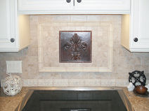 Custom diagonal copper accent tile with 346-Fleur De Lis design.